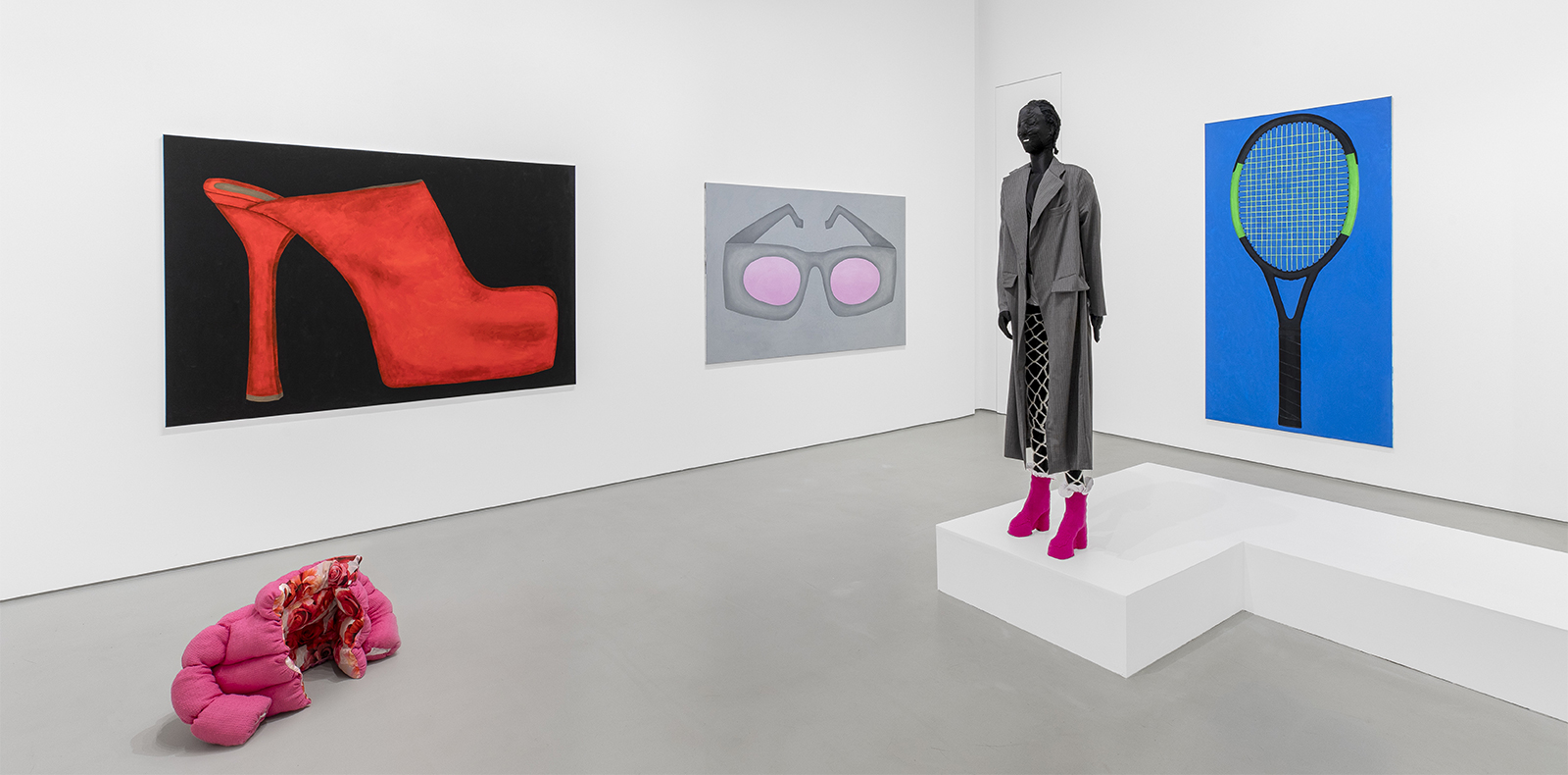 Contre le mur d’une salle du CAPC, deux corps grandeur nature sont figés côte-à-côte. L’un est endormi, écouteurs enfoncés dans les oreilles et téléphone à la main, l’autre, absorbé par l’écran de son ordinateur. Ils sont submergés par une avalanche de longs rubans turquoise auxquels sont accrochés des extraits de SMS ou de mails, tous reliés à une vingtaine de petites cloches évoquant celles utilisées jadis dans les maisons bourgeoises pour sonner le personnel. Submergés, voire totalement asservis par leur vie numérique, ces deux personnages en plâtre peints à la main par l’artiste allemande Agnès Scherer évoquent notre dépendance à la technologie. Le spectateur, sûrement muni lui aussi de son smartphone, se retrouve ainsi face à l’opérette de sa propre vie et de ses innombrables journées de télétravail passées au fond de son lit, les yeux rivés sur son écran. L’installation emprunte d’ailleurs à la biographie de la plasticienne, qui a utilisé des morceaux de ses propres conversations pour remplir les petits bouts de papiers éparpillés jusque sur le sol. Ainsi peut-on lire des échange froids, qui rajoutent à la dimension anxiogène de l’œuvre : “No pressure but it is your last chance” (“pas de pression mais c’est ta dernière chance), “Everyone’s partially miserable” (“tout le monde est partiellement misérable”)… Une servitude numérique qui emprunte sa thématique à la nouvelle Un cœur simple (1877) de Gustave Flaubert, dont l’héroïne Félicité, une domestique solitaire, se prend de passion pour son perroquet – que l’on retrouve ici peint sur une petite fenêtre de l’écran d’ordinateur du personnage de gauche, perdu parmi les mails et les documents ouverts.