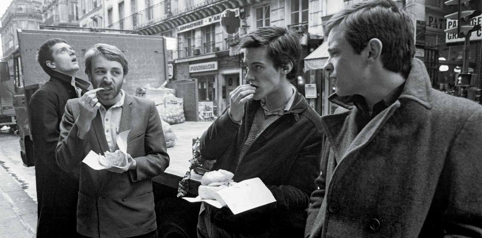 “C’était au moment de leur fameux concert aux Bains Douches. J’avais contacté directement leur manager et essayé de vendre le sujet à Actuel qui, à l’époque, n’avait pas voulu des photos. Ensuite, tous les journaux rock français et anglais les avaient publiées. Sur cette image, Ian Curtis ne mange pas de frites. Il a le regard vague et distant, se tenant tout seul, sur le côté. Il semble absent, assez loin du quotidien d’une rue parisienne animée, la rue Saint-Denis. C’était quelqu’un de simple et de discret qui semblait habité par sa musique. Il n’avait pas l’air aussi torturé que ce que l’imagerie qui a circulé sur lui après sa mort a laissé croire. C’est une photo impromptue et non posée, prise au moment où le groupe mangeait un kebab dans la rue. Leur roadie s’était absenté pendant dix minutes, car il était parti coucher avec une prostituée dans un hôtel du coin, c’est à ce moment-là qu’on a shooté ces clichés. On a passé la journée à réaliser des images, dans l’église Saint-Eustache et dans le quartier des Halles. Le Forum des Halles était alors en construction.”