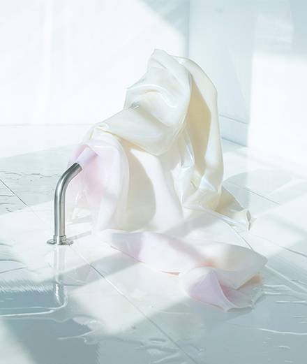 Sculptures, paintings, installations… The second floor of the historic address, where Mr. Guerlain once received his customers, is being transformed into an exhibition space under the direction of art historian Caroline Messensee. Thanks to its collaborations with several Parisian galleries, the house has been able to bring together the works of 21 international artists. A compression of César and a suitcase by Wim Delvoye, already very established figures in the art world, meet pieces by younger talents such as Jean-Charles Blais or Dana-Fiona Armour. The latter’s organic pork gelatin sculptures rub shoulders with the sleek design of a black smoked glass bottle by Jeanne Briand. Because each of the exhibits has was chosen for its material properties: On the walls, a dark yellow figurative tapestry created by Ana Silva dialogues with an abstract painting by Lee Bul and the porcelains of Zhuo Qi, offering three striking examples of ancestral techniques revisited in a contemporary way.