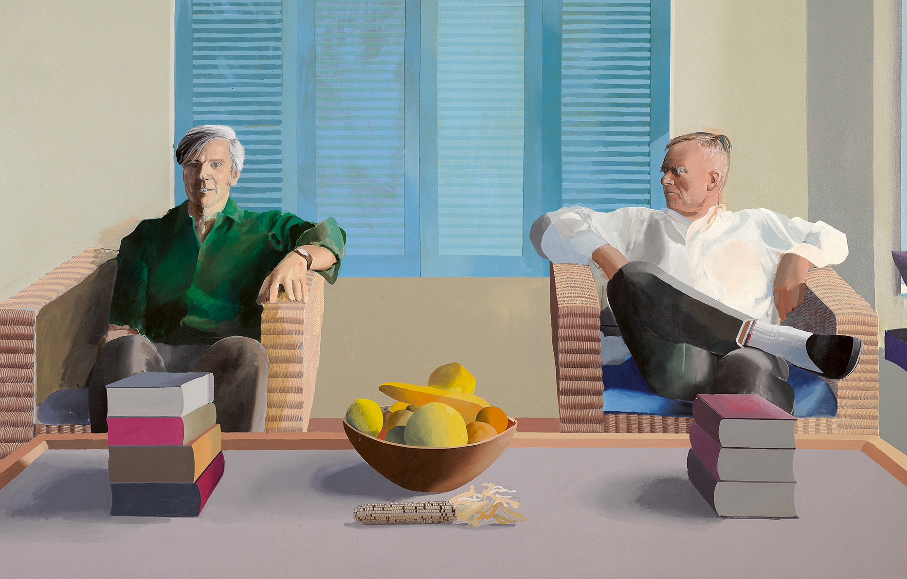 David Hockney, Christopher Isherwood and Don Bachardy (1968). Acrylic on canvas, 212.09 x 303.53 cm. © David Hockney. Photo: Fabrice Gibert.