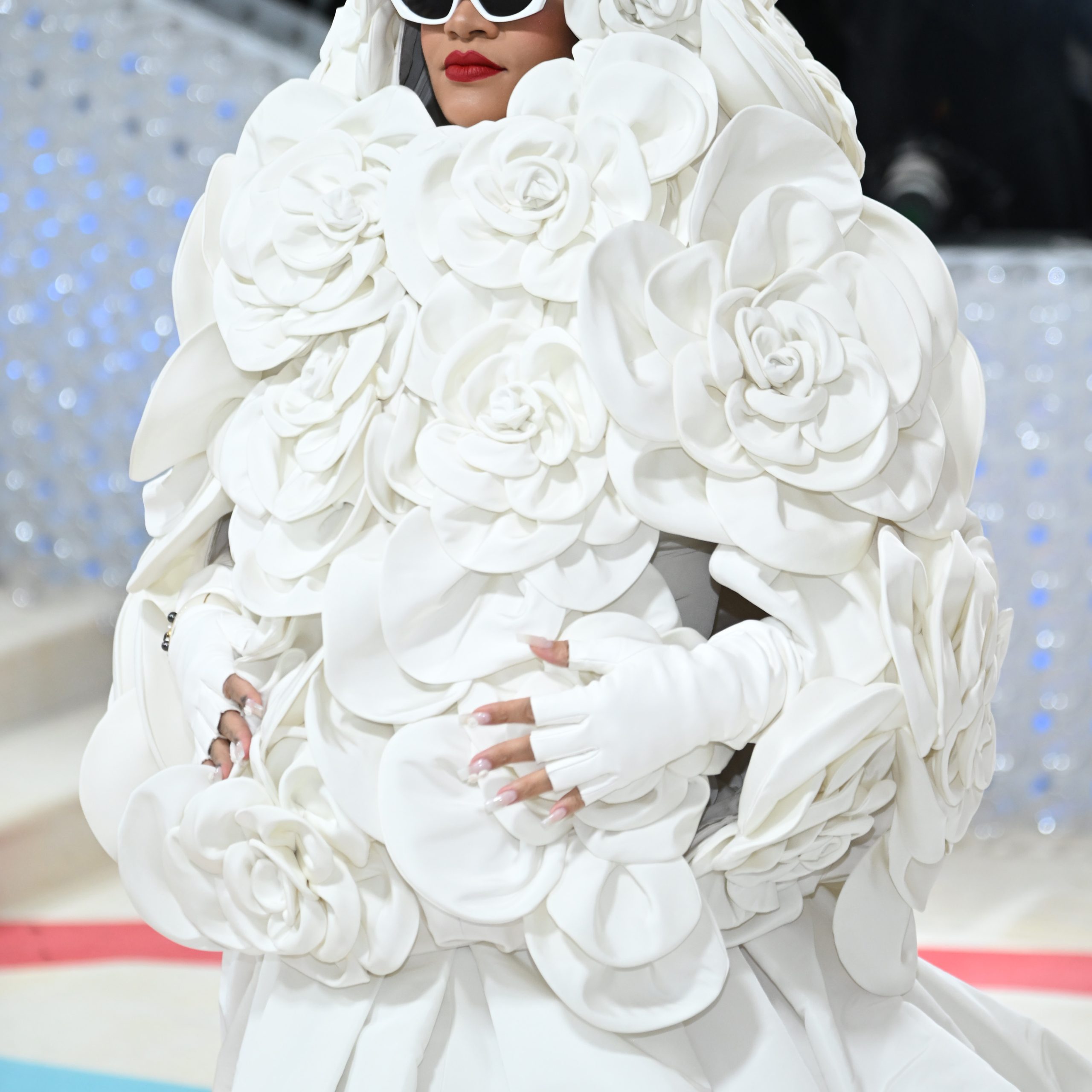 Aside from Karl Lagerfeld, his beloved Birman cat Choupette was the main character of the 2023 Met Gala. American rapper Doja Cat, who is now known for her extravagant and high-fashion looks, made quite an impression on the red carpet with her cat-shaped face. Along with sharp claws, tiny ears, and a prosthetic facial piece, the catwoman 2.0 appeared in a splendid silver and white custom-made dress using marine pearls and bugle beads with a train of light feathers designed by Oscar de la Renta. As for Lil Nas X, he offered a bling version of the feline with a total look made of Swarovski crystals. With silver paint covering his entire body and a make-up done by Pat McGrath Lab, the rapper made his entrance wearing only a revealing ton-on-tone thong. More literal and less poetic, American actor Jared Leto walked up the steps of the MET in a simple fluffy, mascot-like white cat suit, before unveiling a black total look designed by Karl Lagerfeld.