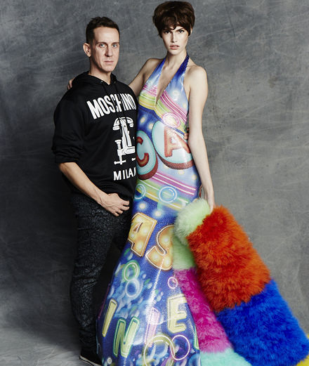 I never think of myself as anti-fashion, I fuckin’ love fashion so much I put on a FASHION SHOW last night, you know what I mean?! I think I love fashion more than other designers, and they can’t hate me for that, or say that I’m wrong. I feel that what I do is more in the real sense of fashion: I try to give inspiration, a moment, something creative, something inspirational, something thought-provoking. I don’t really care about sales, or even critics’ opinions, I care about making a moment happen. And to me that’s the reason for becoming a designer. That’s what the designers I liked when I was growing up did – Jean Paul Gaultier didn’t always have great reviews. But I think we’re becoming a much more commercial society, even with the way we look at movies − we didn’t talk about the box office even ten years ago. It was about what people liked and people enjoyed, and today it’s all about numbers. So I’m lucky Moschino’s numbers are doing great, but that’s not the reason why I do it.