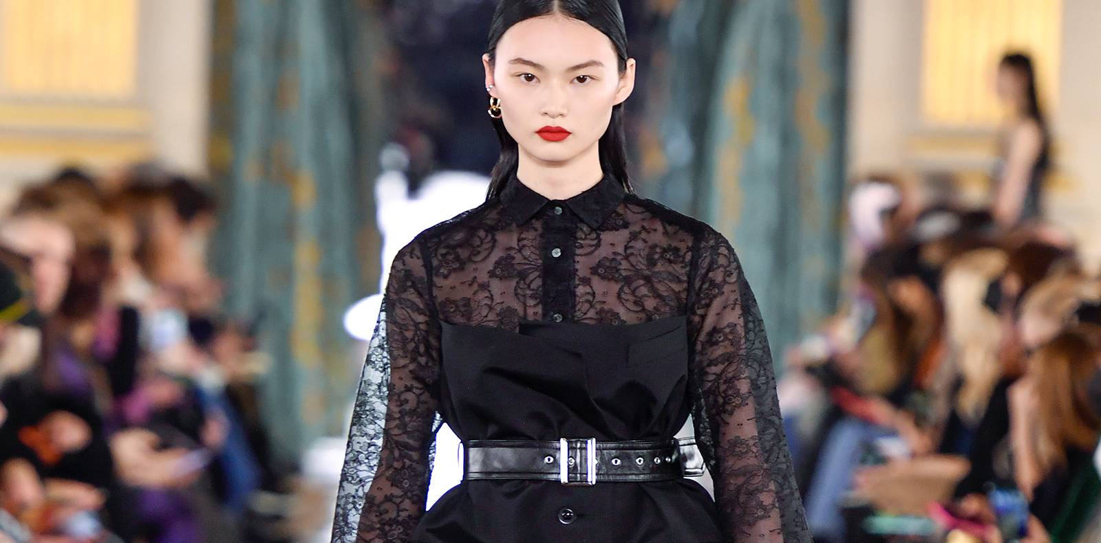Si dans ses dernières collections, Jonathan Anderson rendait hommage aux rave party et aux looks des fêtards, c’est l’avant ou l’après-fête qui semble ici guider ce nouveau vestiaire. Les ballons de baudruche se voient soit imprimés sur la soie, soit imités par les gonflements d’un haut ou des lanières de sandales, voire complètement dégonflés sur un haut fait d’empiècements colorés ou tout le long d’un pantalon blanc, tandis que des fourrures et poils habillent des combinaisons ajourées, un haut et une jupe longue et taille haute. Là où un perfecto bleu métallisé et des mini-robes moulantes à sequins évoquent un contexte résolument festif, le côté pop et décalé transparaît également dans des références au film d’horreur Carrie au bal du diable de Brian de Palma : écrit en lettres rouge sang, le nom de l’adolescente martyrisée qui utilise ses pouvoirs magiques à des fins vengeresses apparaît sur des vestes à zip, des petits sacs en cuir noir, tandis que son visage tantôt angélique, tantôt diabolique se voit imprimé sur des chemises, hoodies et pantalons. Le visage enfantin d’Annie du dessin animé coréen des années 80 Cours, Annie cours apparaît sur un survêtement ou une robe rose satinée. Enfin, de fines lamelles noires ou bordeaux réunies sur des boucles d’oreille et un haut évoquent les bandes magnétiques des cassettes, pour un esprit définitivement vintage.