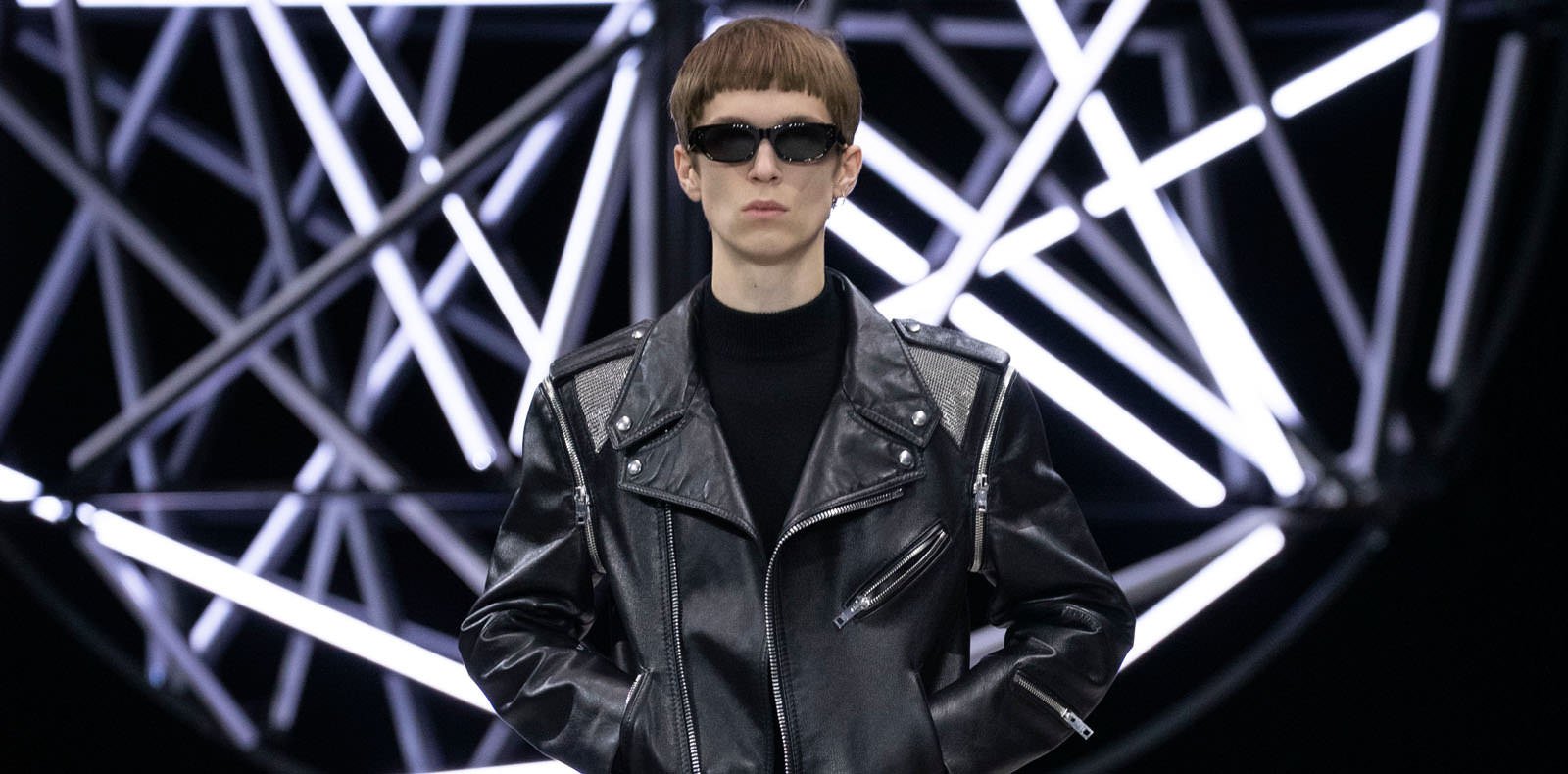 Résolument féministe, Colette s’habillait souvent comme un homme afin d’échapper aux carcans sociaux alors imposés aux femmes. Un élément essentiel de ce défilé, qui s’illustre notamment au sein de manteaux d’officier, de cabans découpés dans du flanelle, du drap de laine et du tweed, ainsi que dans des pièces plus souples à l’instar d’un pantalon (look 29) associé à une veste de costume aux épaules parfaites.