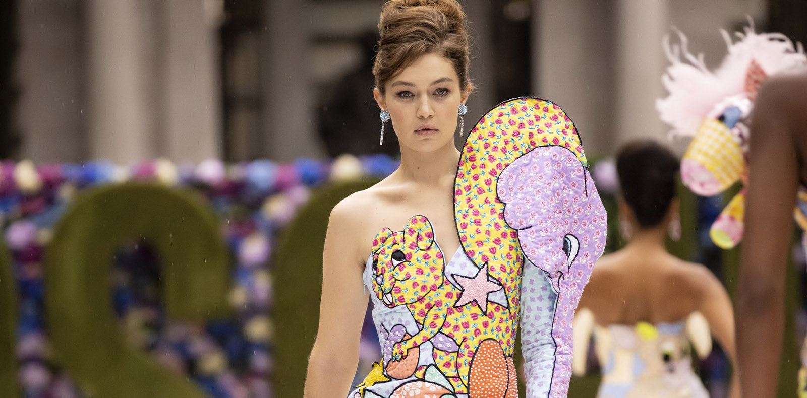 Dans cette collection, Miu Miu introduit également une nouvelle paire de sneakers sous la forme d’une collaboration avec l’équipementier américain New Balance. Pour l’occasion le label italien de Miuccia Prada offre sa version du modèle New Balance 574 datant des années 1980 et décline la basket en trois couleurs, blanc, kaki et bleu, avec des bords francs qui mettant l’accent sur la construction par la déconstruction.